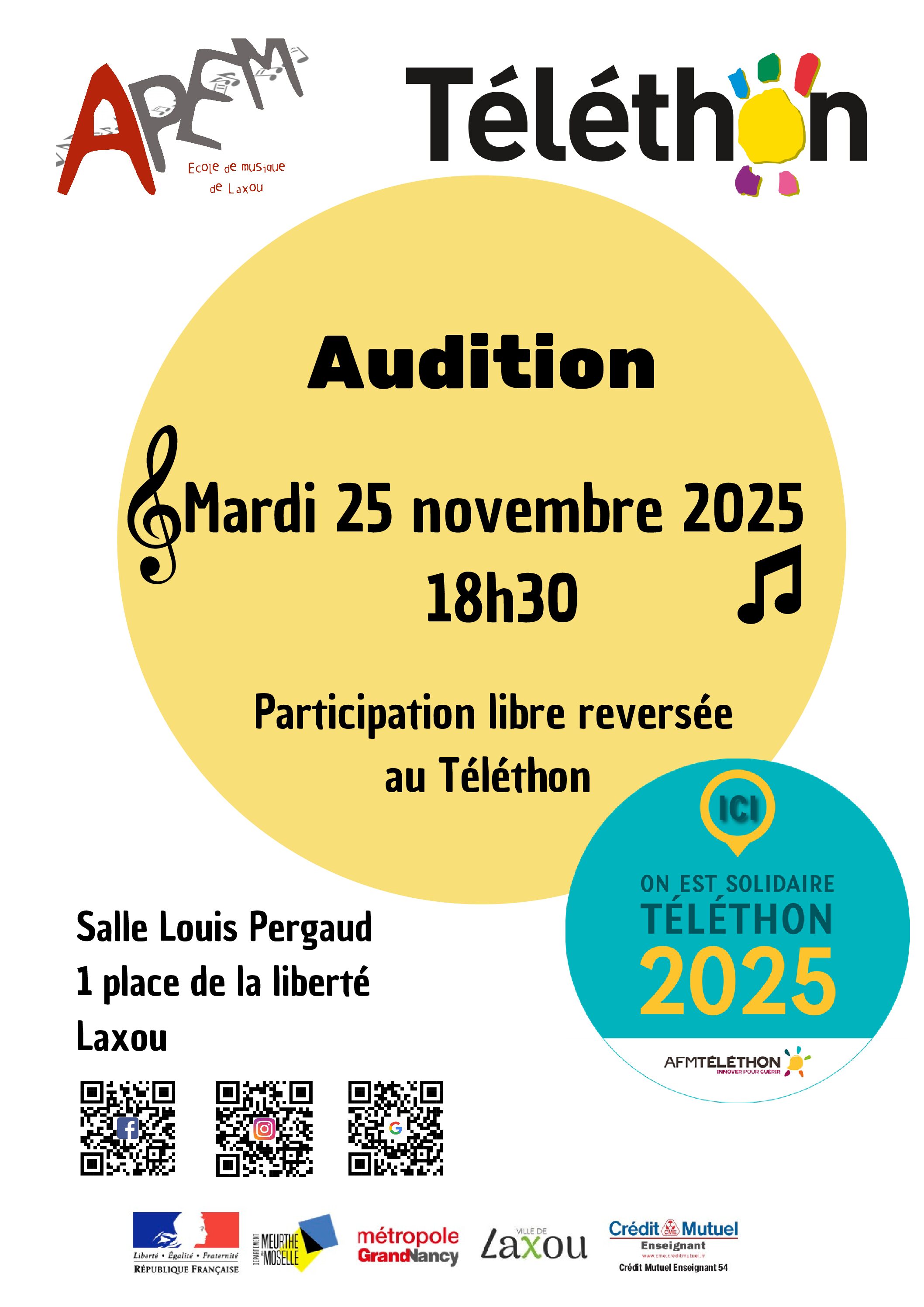 Lire la suiteLes élèves de l’APEM Laxou vous proposent une audition salle Louis Pergaud à Laxou mardi 25 novembre à 18H30. Les dons collectés à cette occasion seront entièrement reversés au Téléthon. […]