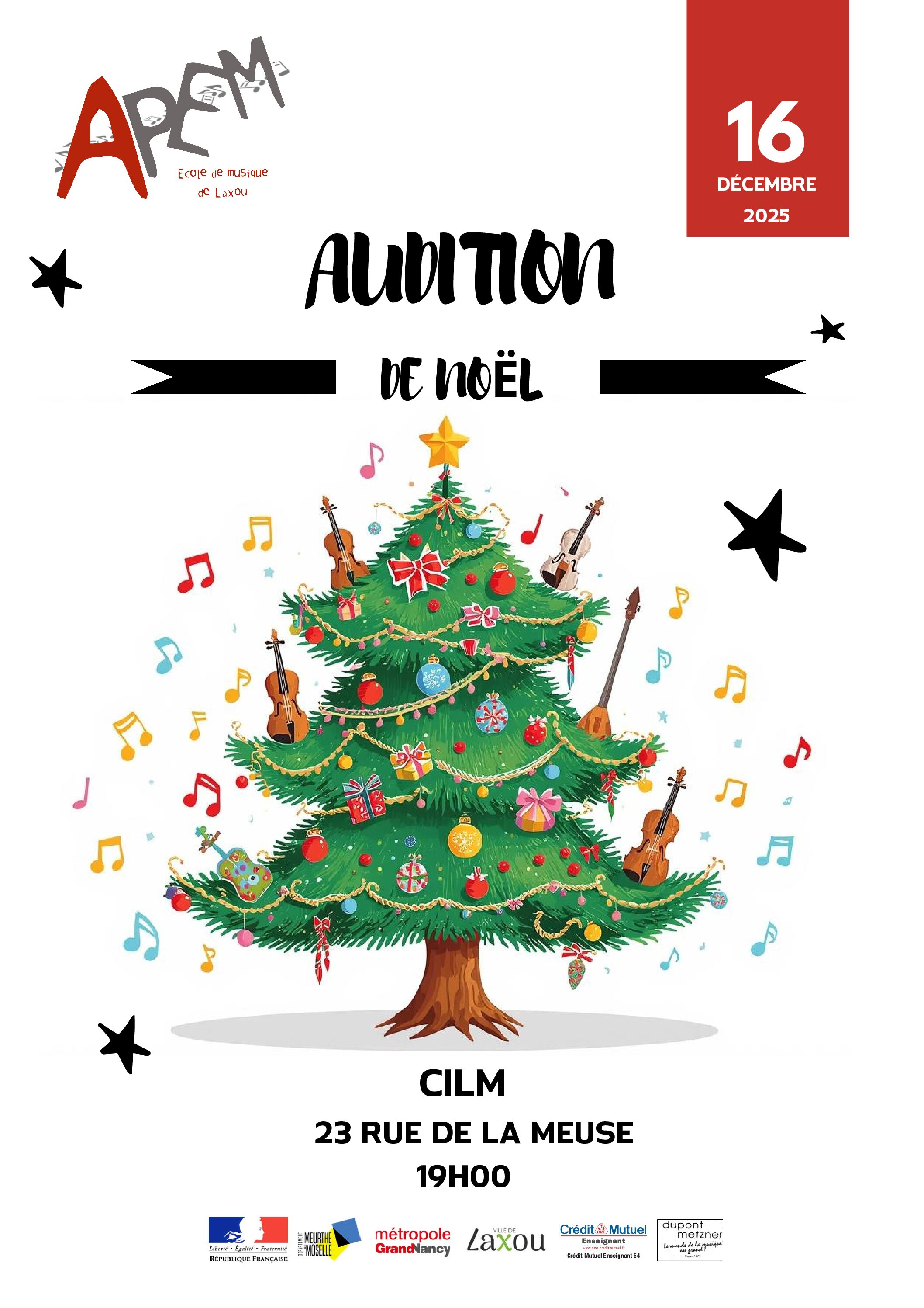 Lire la suiteL’APEM Laxou donnera son concert de Noël mardi 16 décembre au CILM à Laxou à 19h. Entrée libre. Venez nombreux !