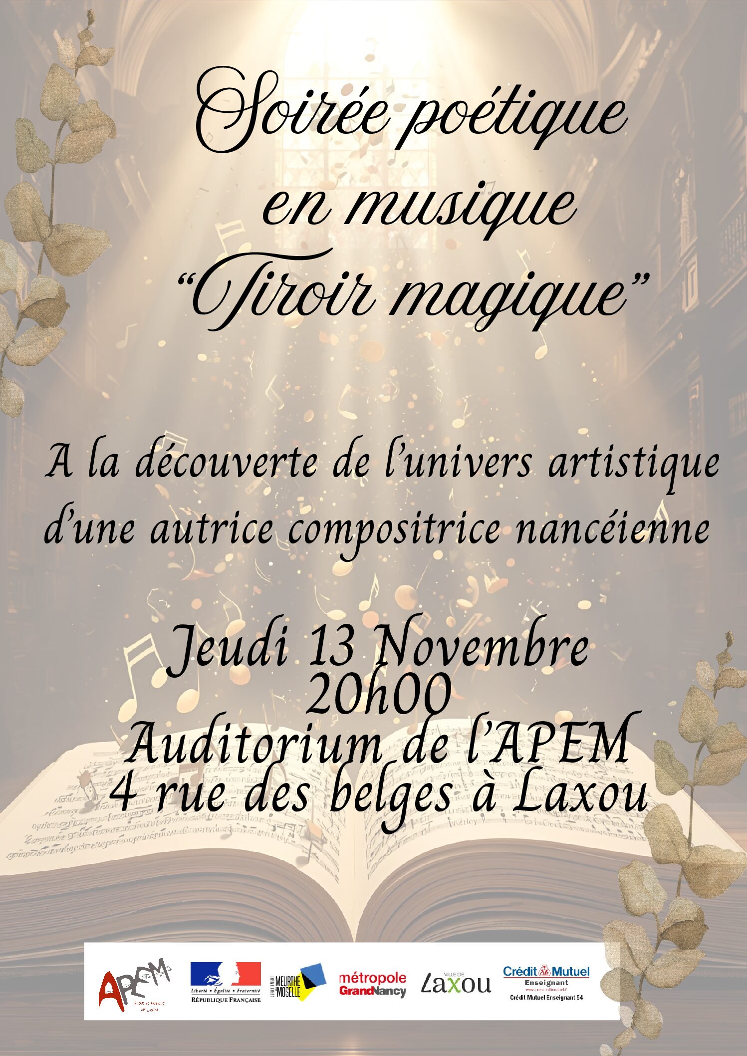 Lire la suiteUne autrice et compositrice nancéienne à découvrir en musique ! Jeudi 13 novembre à 20h à l’auditorium.